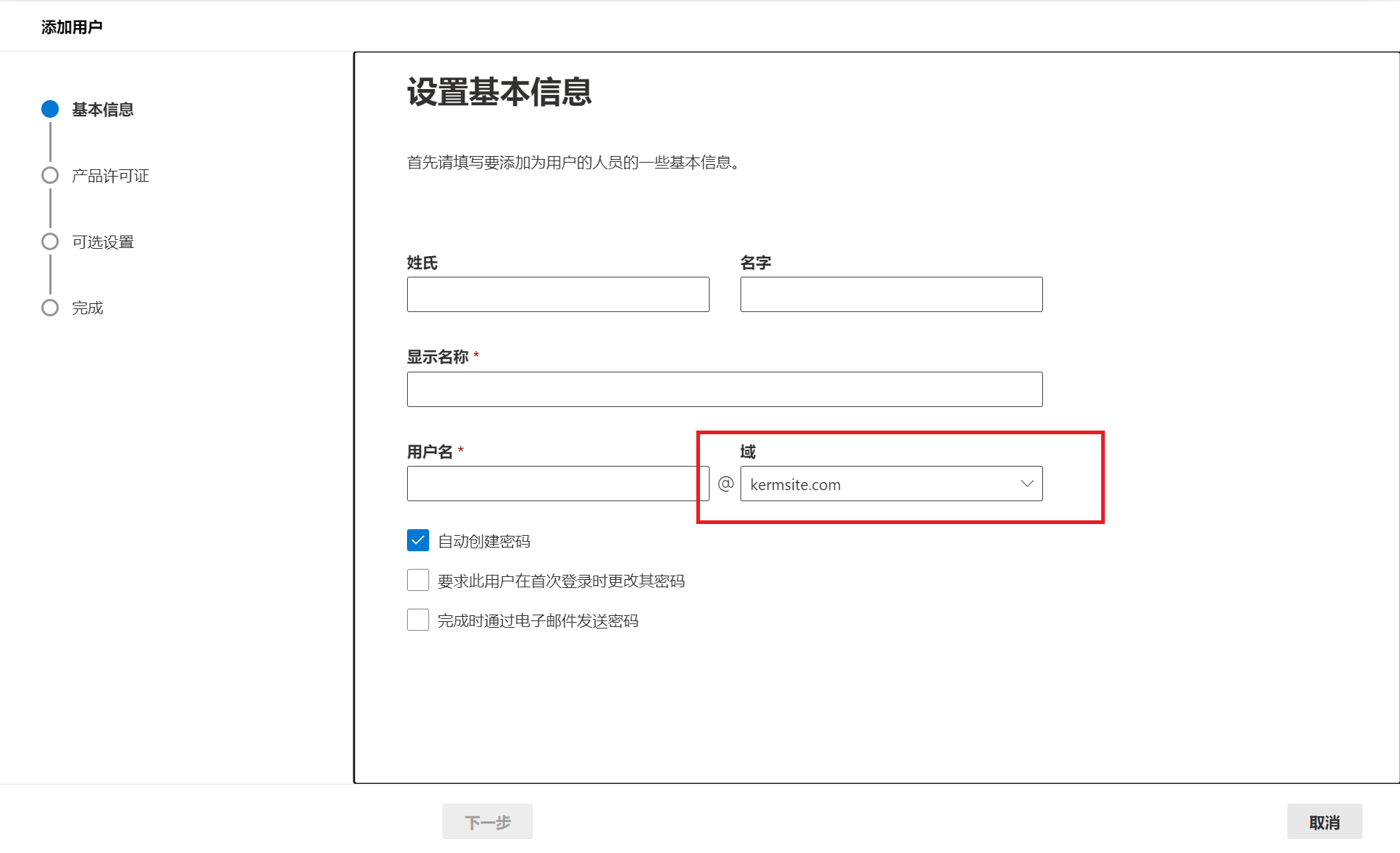 添加自定义域用户