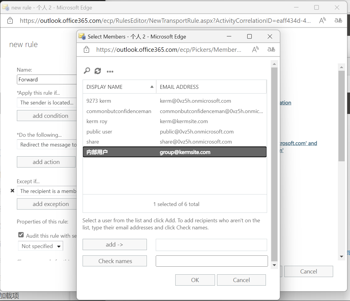 对于个人而言,我们只需要将所有发送到此企业邮箱的邮件都转到自己邮箱就行。但是对于团队,我们并不希望将发给团队中其他人的邮件也转发一次。这里我们建立一个用户组,便于管理。