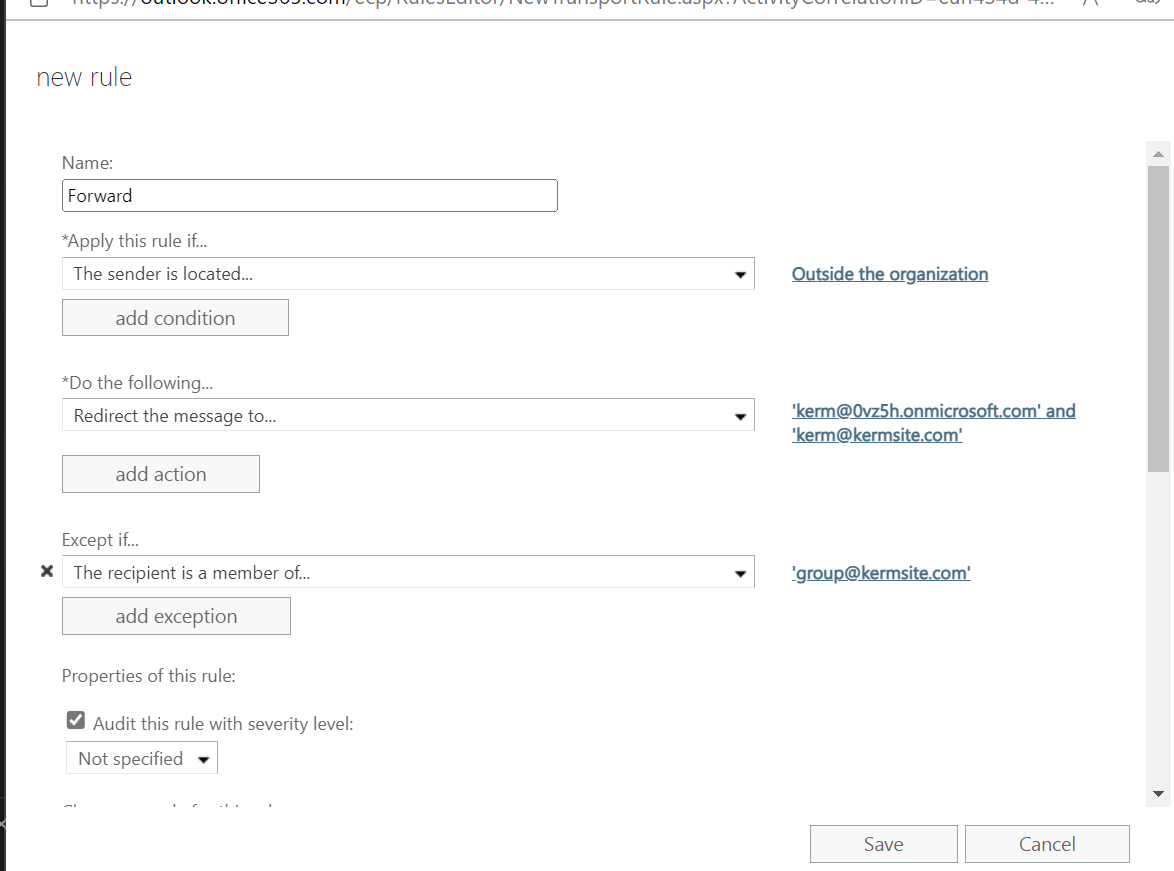 如图,对所有外部发件人应用,转发到我们的常用账户。