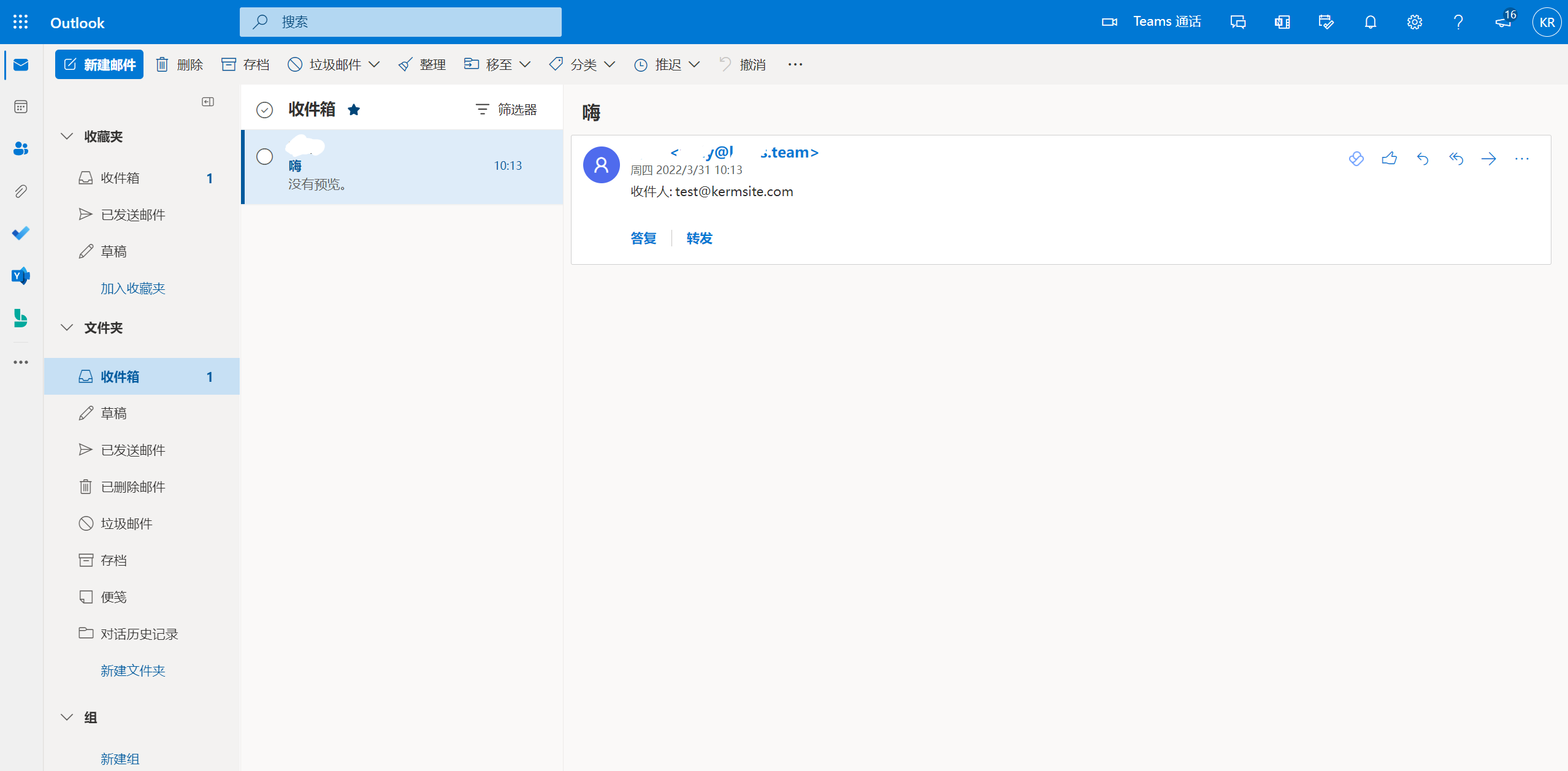 测试一下,注意我使用的是kerm@kermsite.com,但这里的收件人是test@kermsite.com。说明转发成功了。